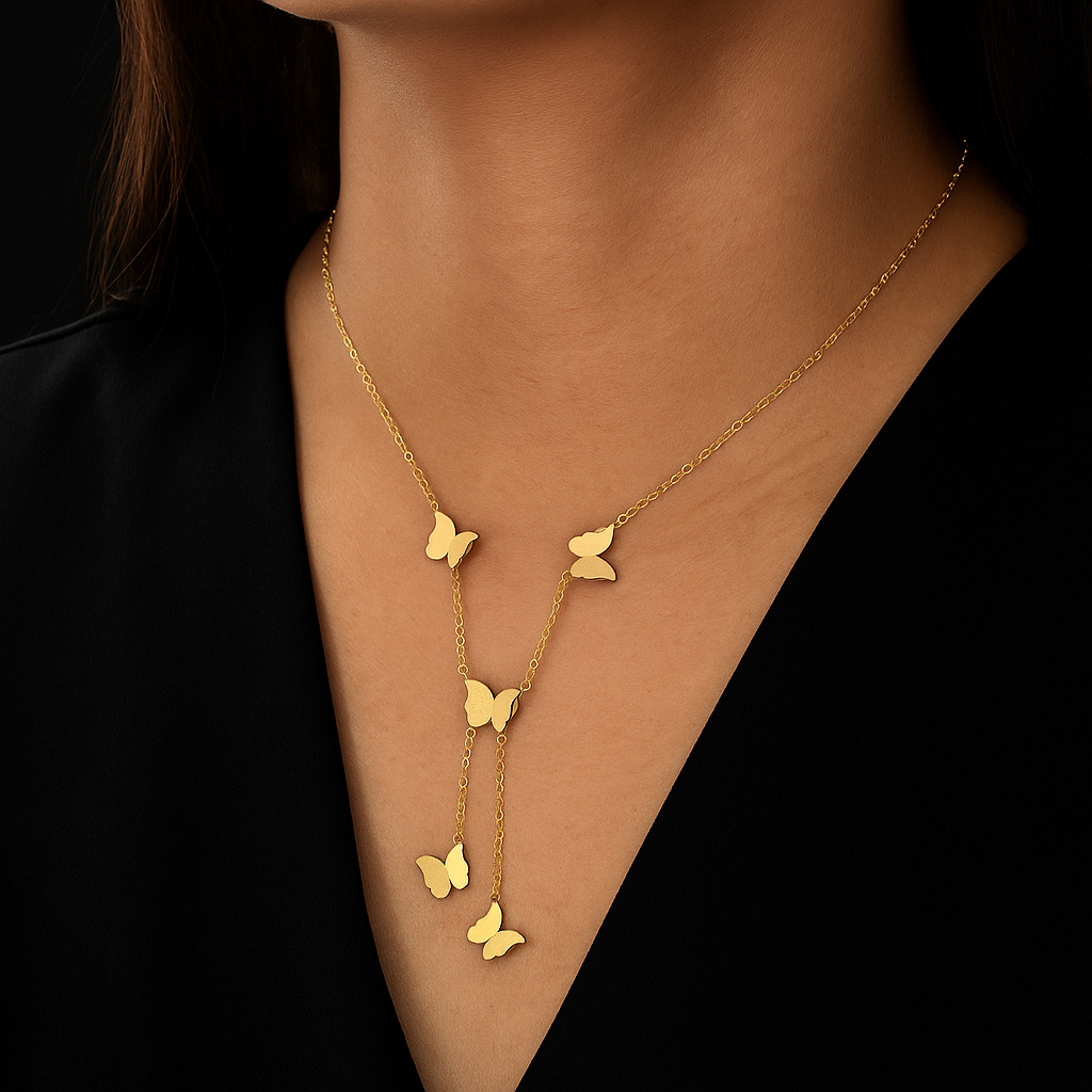 This Bailey Butterfly Gold Plated Necklace is the perfect accessory for any woman. With a stunning butterfly design, this necklace is plated in gold for a luxurious touch. The delicate yet eye-catching design is sure to add a touch of elegance to any outfit. Elevate your style with this beautiful and timeless necklace.